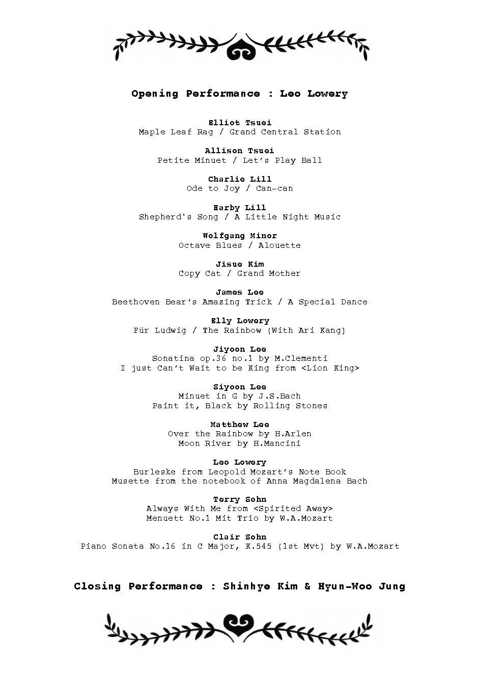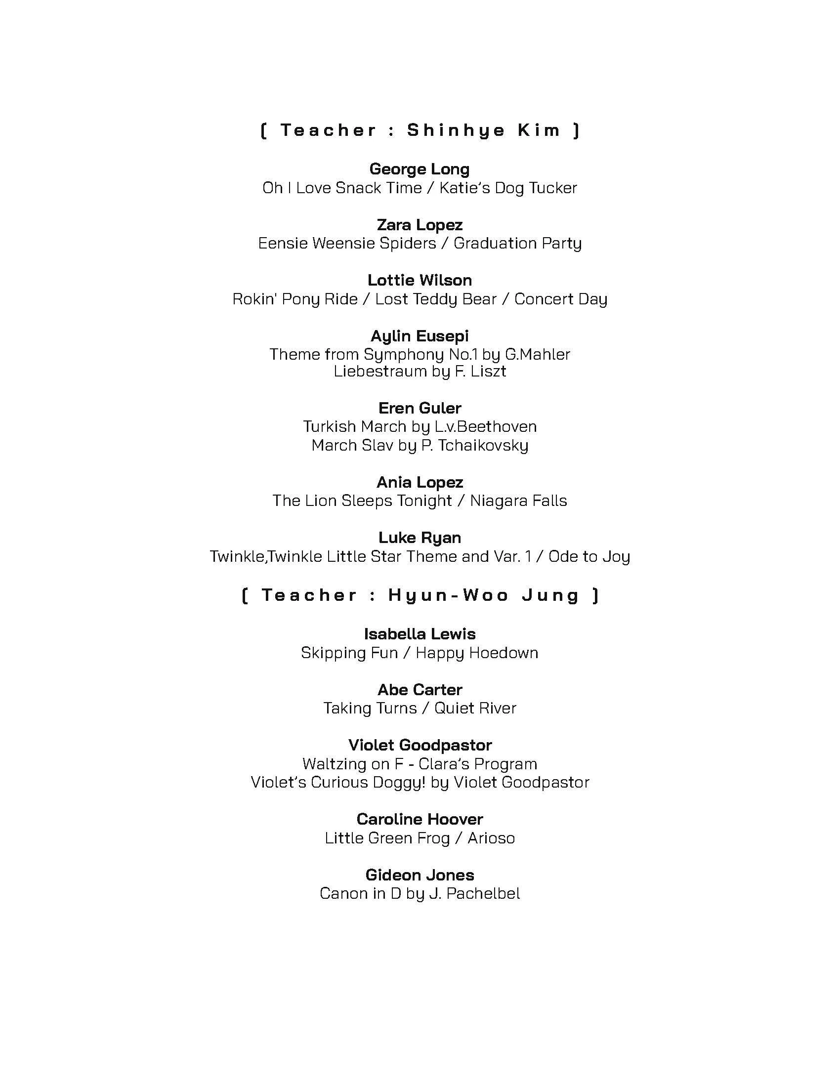 2023 Spring Student Recital by Teacher Jung & Kim